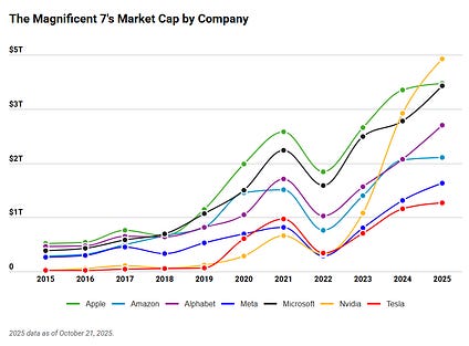 Sette colossi che, a colpi di intelligenza artificiale, stanno letteralmente trainando tutto il mercato.